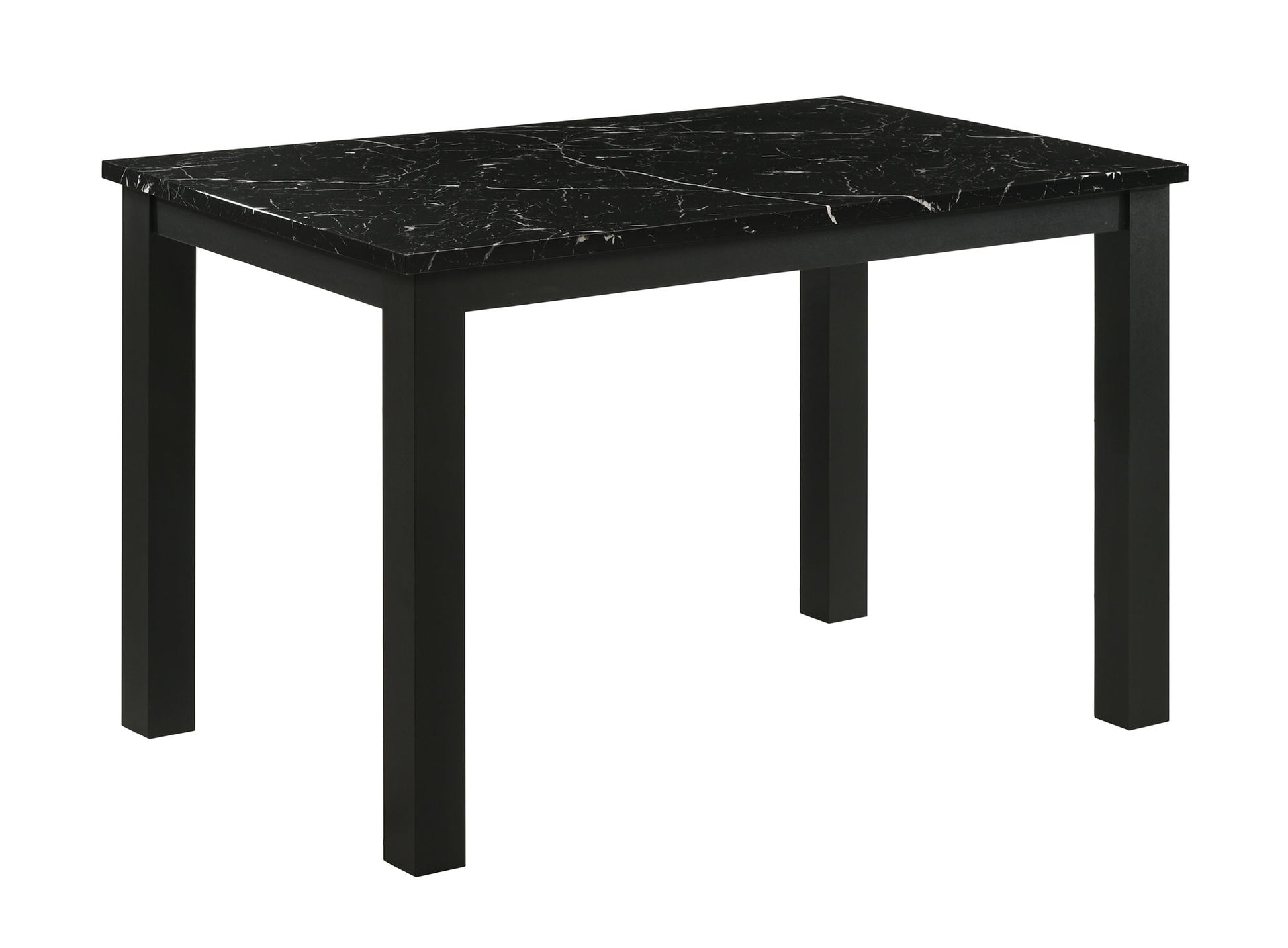 This dining group radiates modern elegance with a sleek, minimalist design that's both stylish and practical. The centerpiece is a contemporary table featuring a sophisticated faux-marble top that elevates the aesthetic while providing a durable and easy-to-clean surface. Surrounding the table are four plush, upholstered chairs in a rich charcoal fabric, offering comfort and understated luxury. The chairs' sleek legs create a cohesive and polished look that complements the table's frame. Perfect for small dining spaces or breakfast nooks, this set brings a chic, upscale vibe to any room without sacrificing functionality.